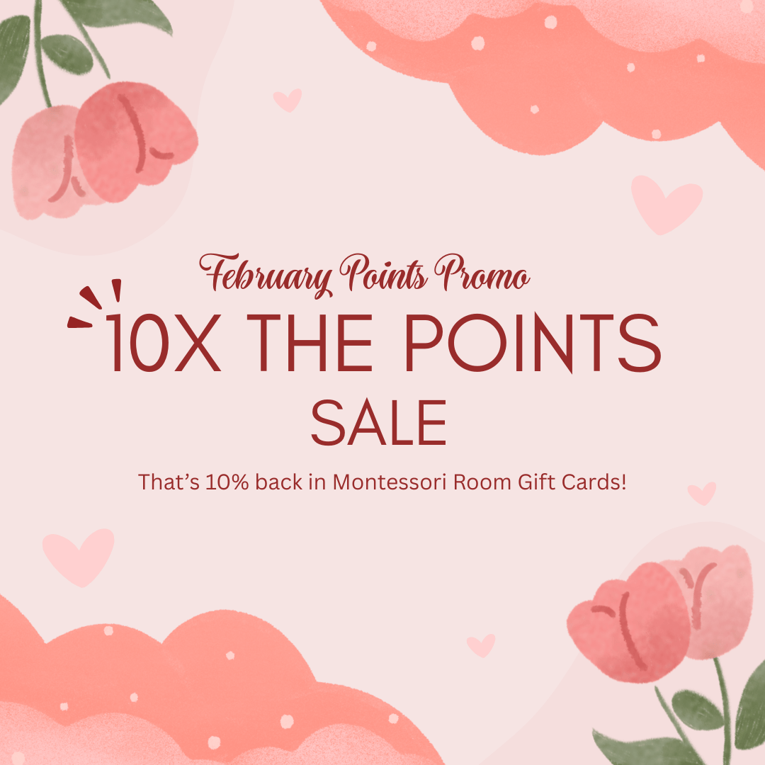 This weekend - Get 10X the points. That's 10% back in Montessori Room Gift Cards.