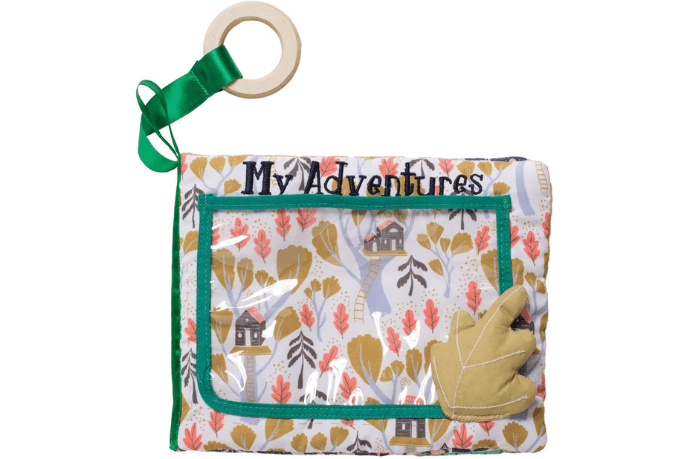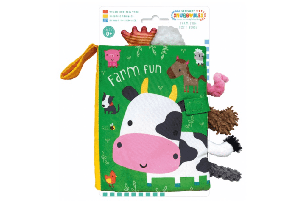 These books are compact in size and lightweight, making them easy to travel with. Each book has different features to keep an infant focused and occupied while also engaging the senses and developing fine motor skills.