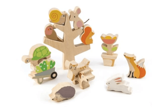 This toy can be played with in so many different ways, making it a travel popular toy for toddlers. Play a game where you try to balance the animals on the tree or use the wooden pieces to inspire imaginative play. Comes with a drawstring bag for storage and easy portability. Recommended for ages 18 months+
