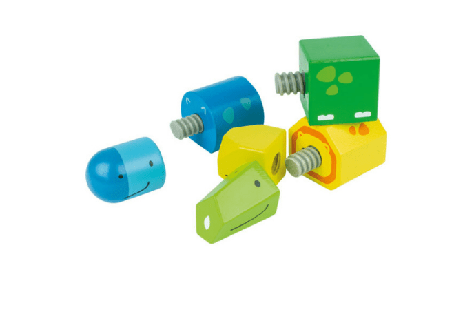 These fine motor manipulatives are great for children who like to keep their hands busy. The 6 wooden pieces are small enough to toss into a bag and designed to foster independent play, perfect for long travel days. Recommended for ages 2 years+