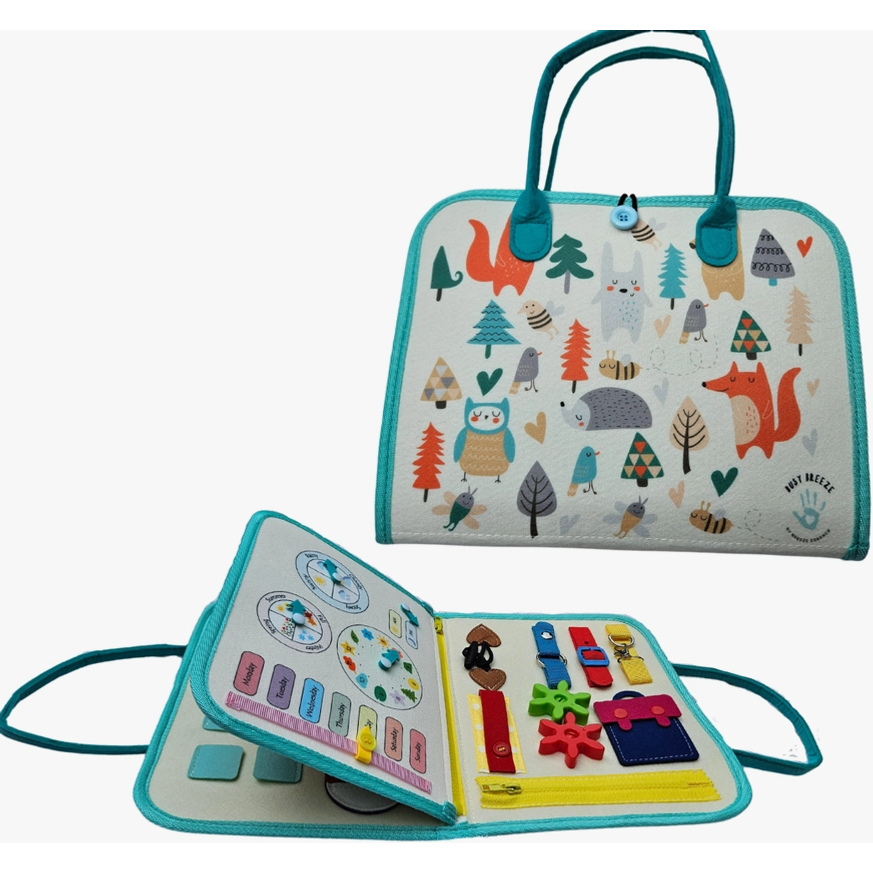 These felt activity books are our best-selling travel toy. They include 4 activity pages, filled with fine motor activities to keep your little one occupied while on the go. They're lightweight and designed with handles so they can be carried around independently by the child. Recommended for ages 3 years +