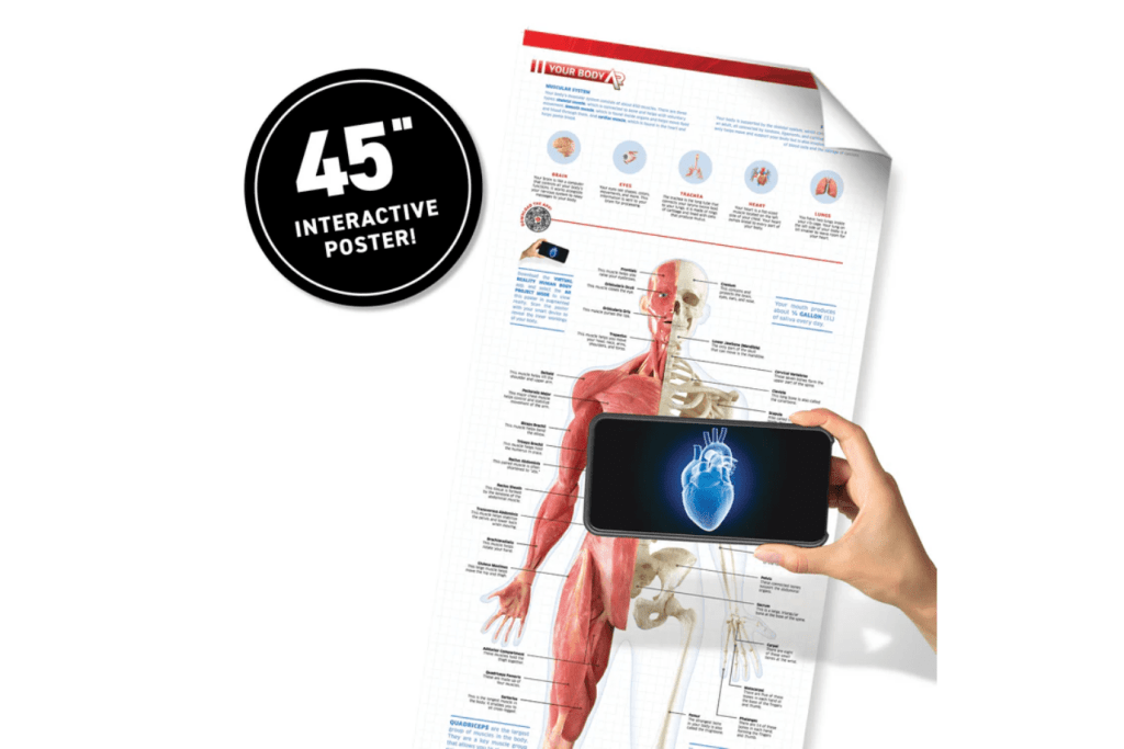 Human Body: Build the skeletal system, then arrange and place vital organs to see how our bodies work! Put on the included VR goggles to ride through arteries, explore the brain, heart, lungs, and more with over 20 virtual reality experiences! Includes bonus X-RAY poster that comes alive in augmented reality.