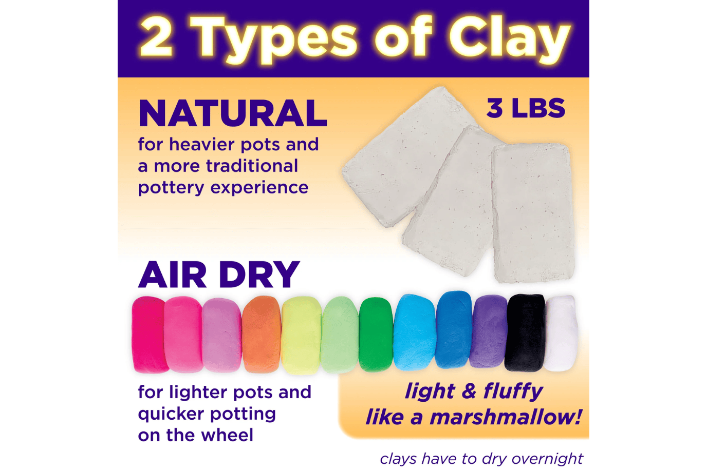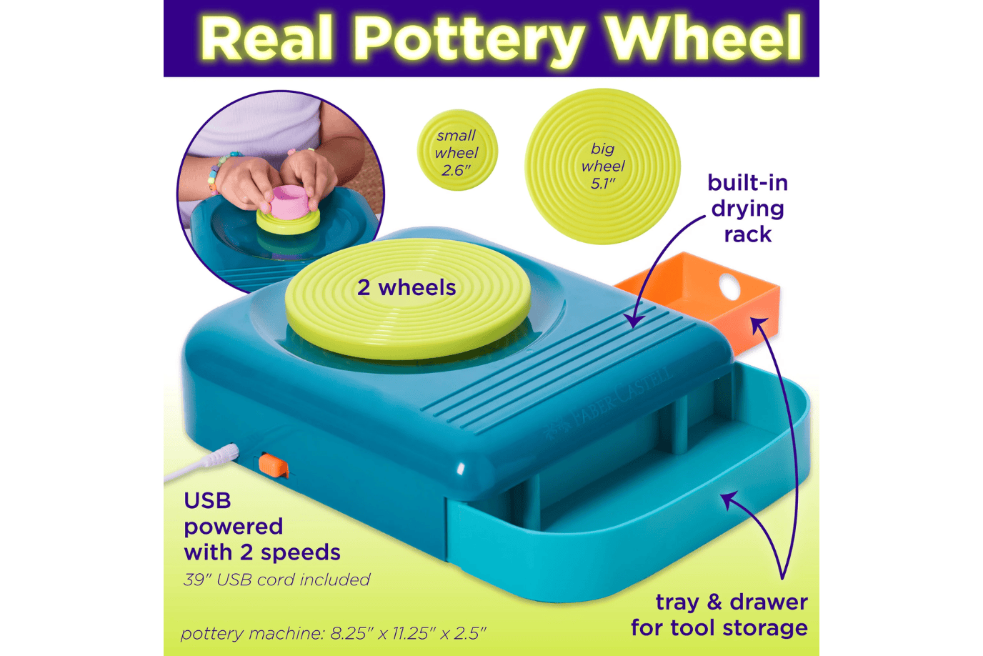 Includes a USB-powered pottery wheel, clay, sculpting tools, and decorating accessories for creating bowls, cups, and unique keepsakes.
