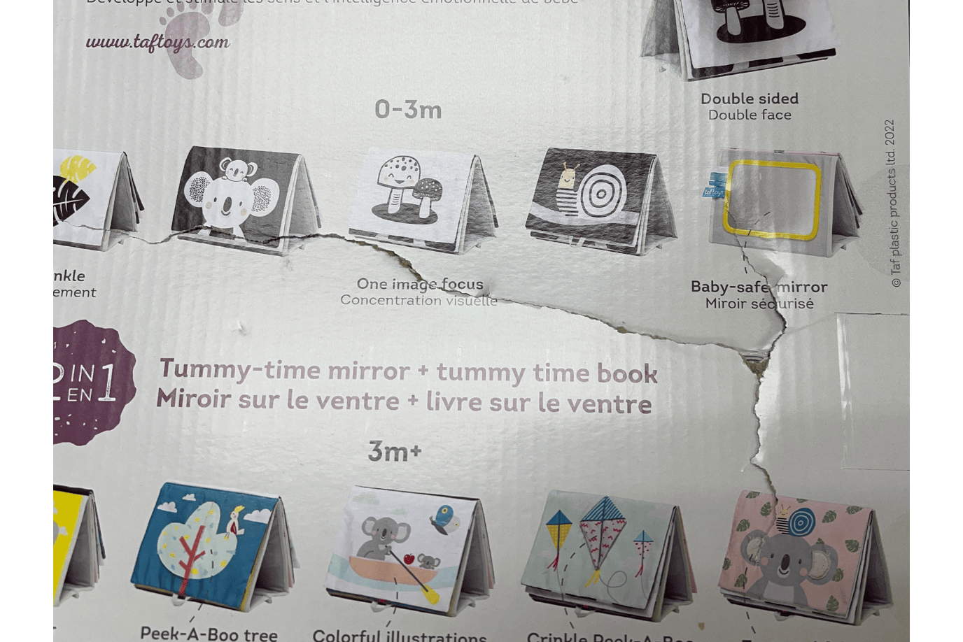 As they get older, babies enjoy the crinkling pages, baby-safe mirror, and textured fabrics.