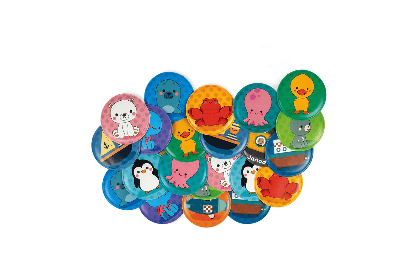 The set includes 24 foam cards that float and stick to tubs and tiles when wet.
