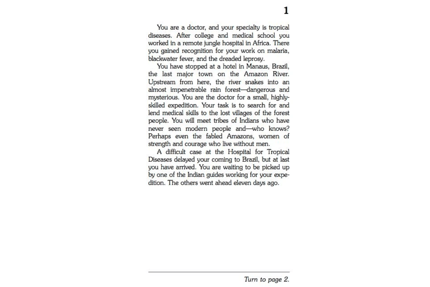 Lost on the Amazon - You're a young doctor specializing in tropical diseases and sent to the Amazon to do good work. But upon arrival in South America, you find that your team is missing! The Amazon River can be misleading. It appears slow and lazy, yet its depth and power have claimed many lives. Has the river taken your friends? Or are they wandering deep into the heart of the jungle darkness that rims its banks? Beware the strange power of the Amazon River, its many strange residents, and its many myths. For ages 9 to 12.