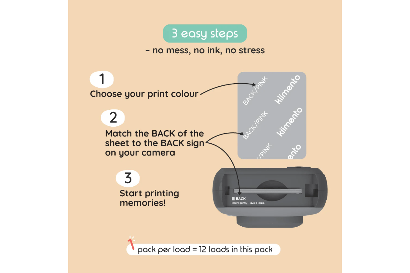 Create, print, and share more memories with the kiimento Print Packs- the ultimate refill for your kiimento Model P2 instant print camera.