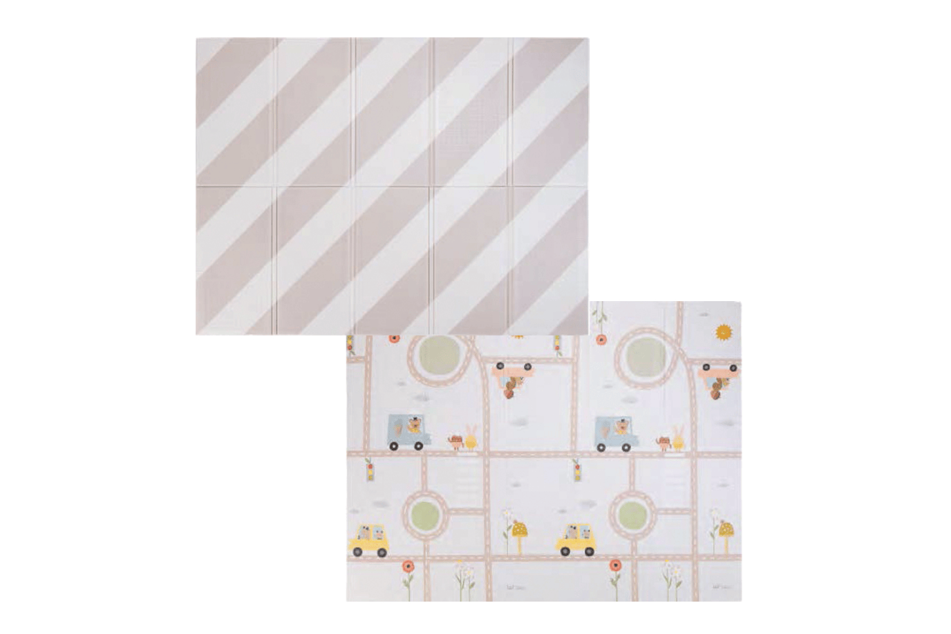 Reversible with two stylish designs. One side features a beautifully illustrated fantasy road scene, inviting toddlers to drive toy cars along the winding paths and spark their imagination. The reverse side showcases a clean, modern décor pattern that blends seamlessly into any home environment.