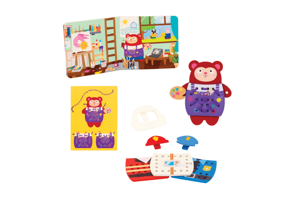 An included play guide also features ideas to incorporate pattern-matching and oral narration into the lacing activities.