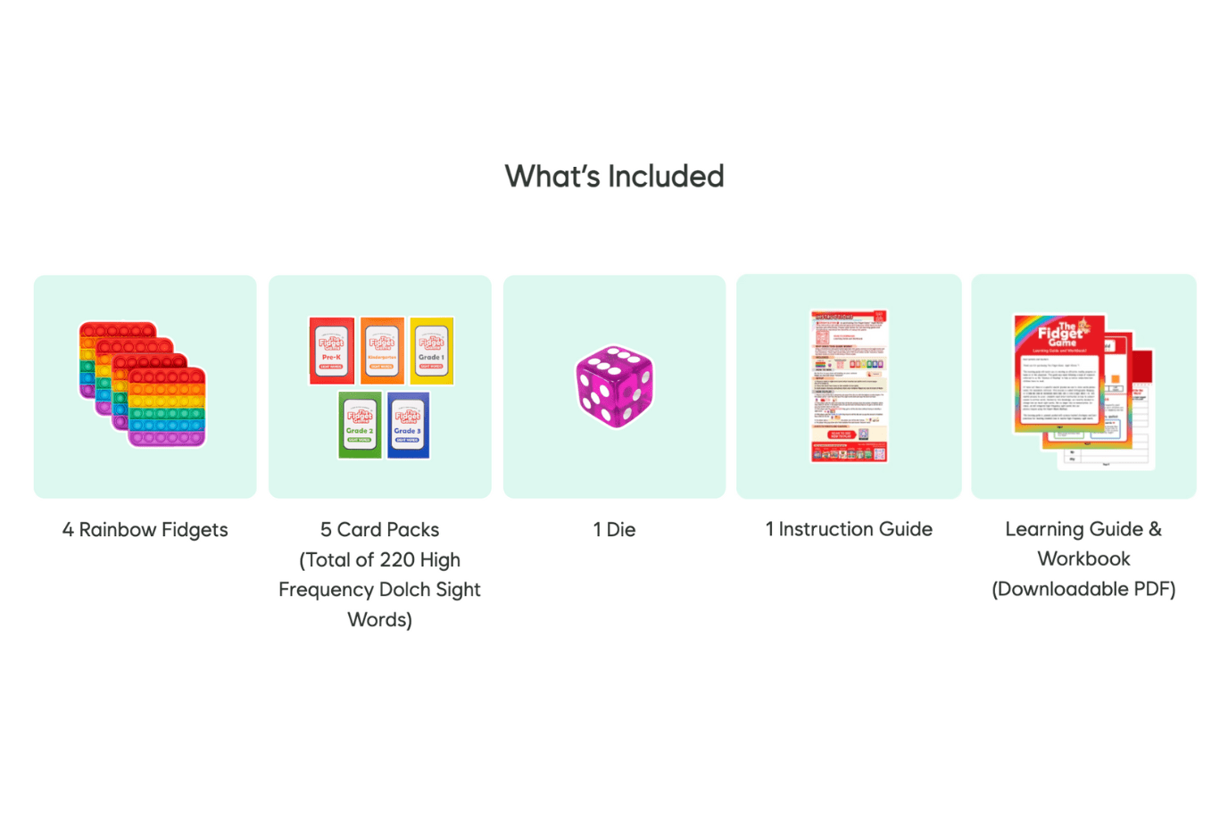 Increased fluency and comprehension skillsThe Fidget Game: Sight Words Key Features