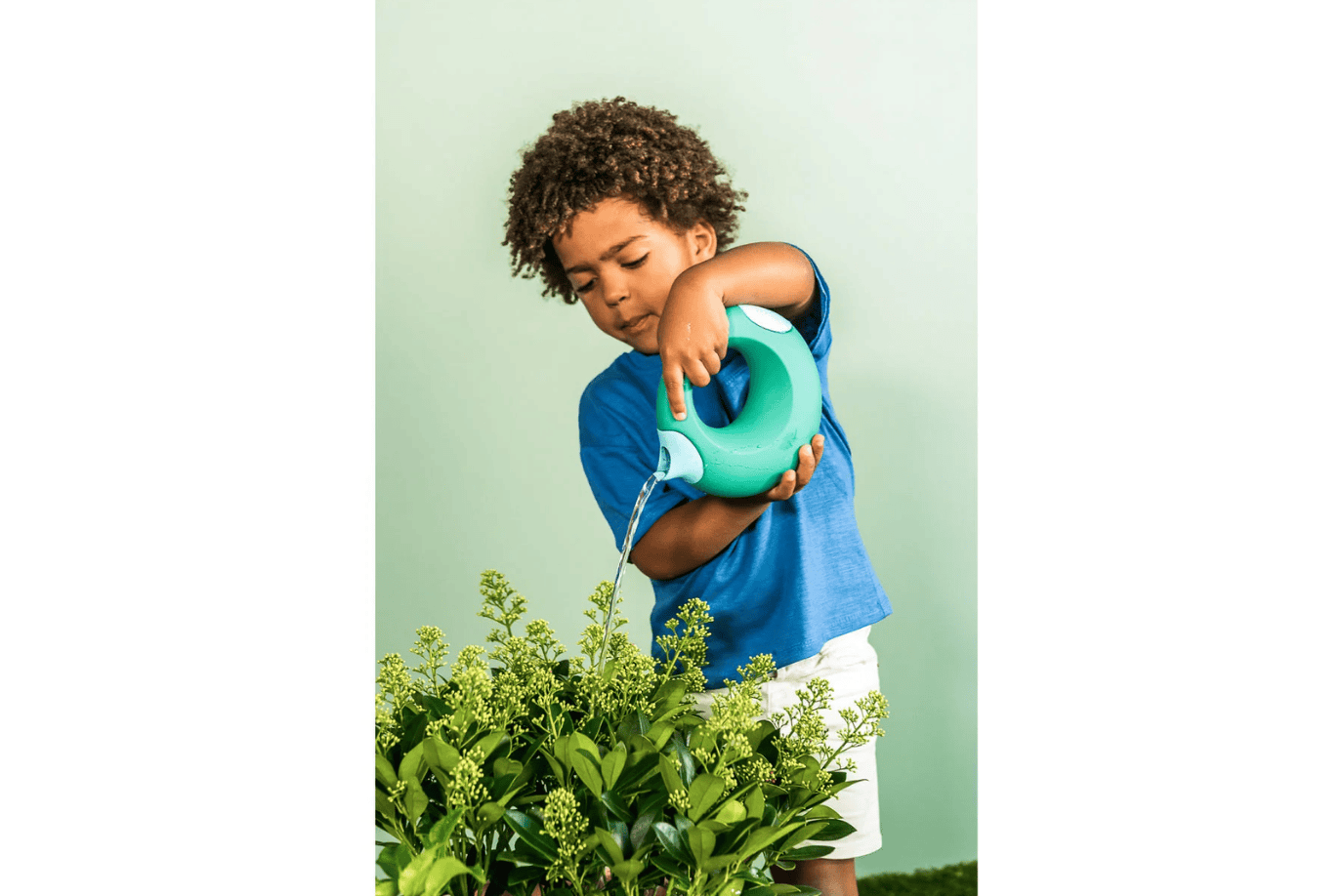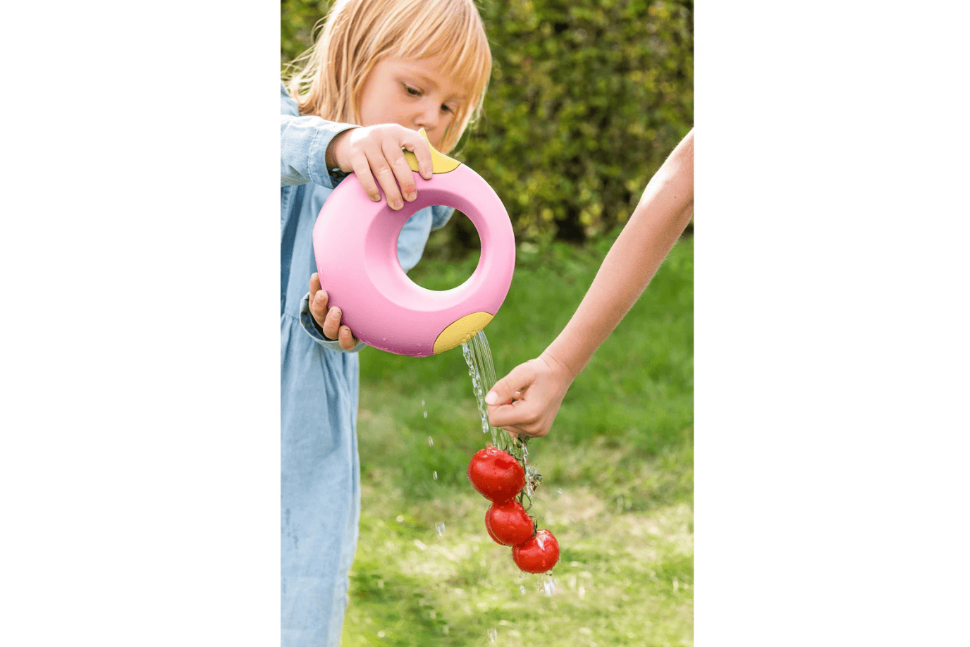 Featuring a reusable polycotton bag, a beach ball, a cana 0.5L watering can, and a rake/digger combo.
