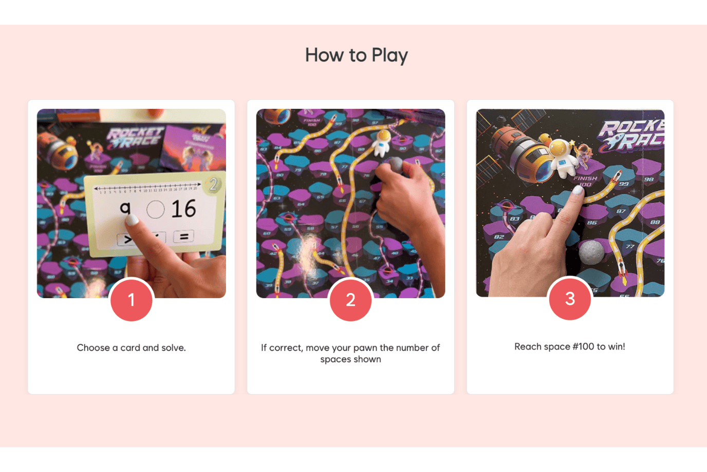 This game is also a great way to develop a strong understanding of place value from ones to hundreds and strengthen comparison skills using greater than, less than, and equal to.