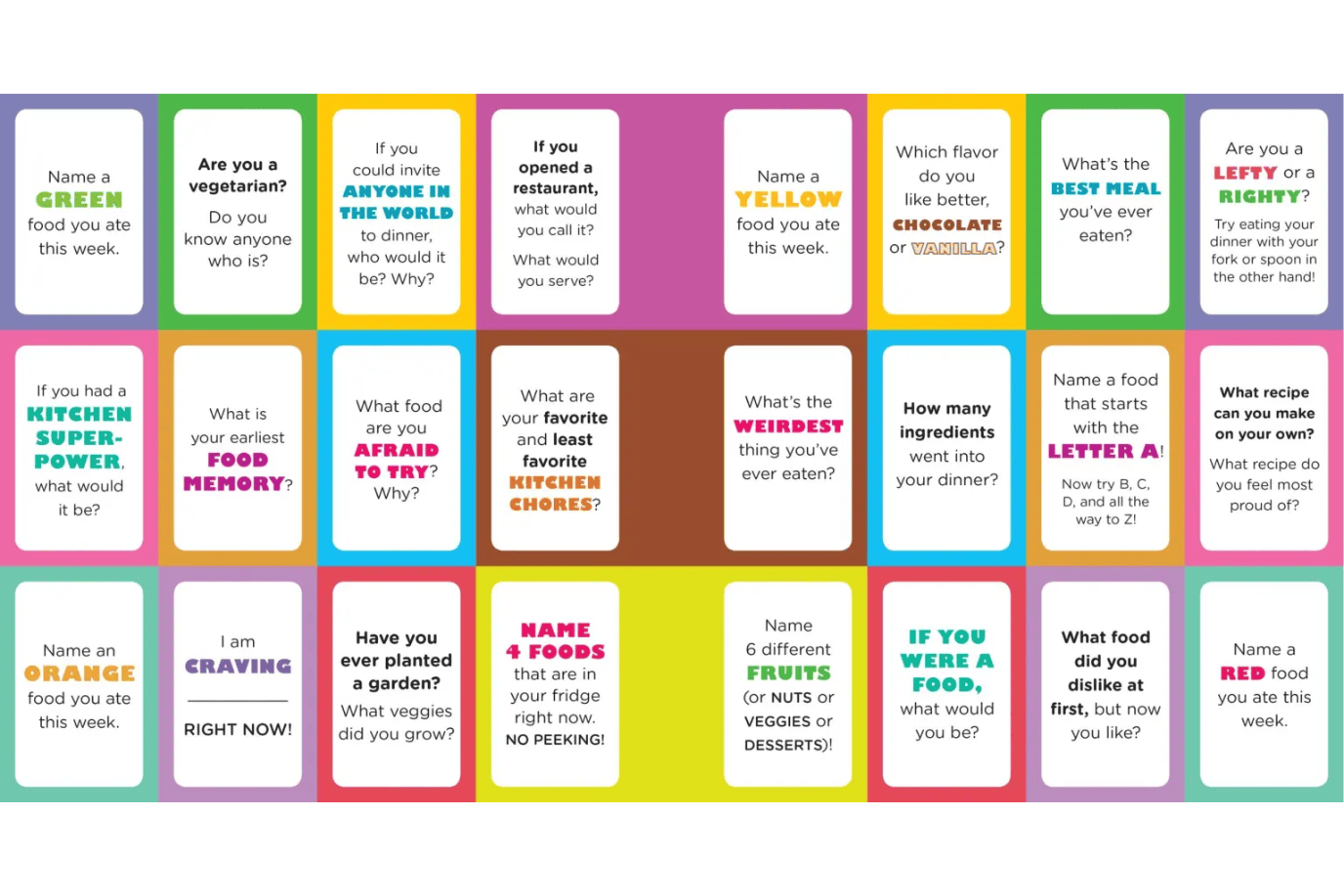 Bonus pull-out pages help kids put the finishing touches on their meals with place cards, meal-time conversation-starter games, recipes cards, and stickers for labeling their homemade food to share with others.